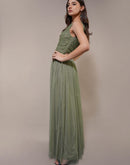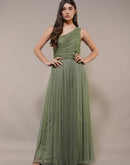 One Shoulder Maxi Olive